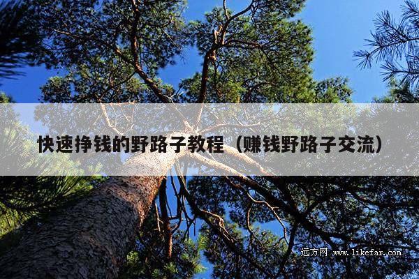 快速挣钱的野路子教程(赚钱野路子交流)